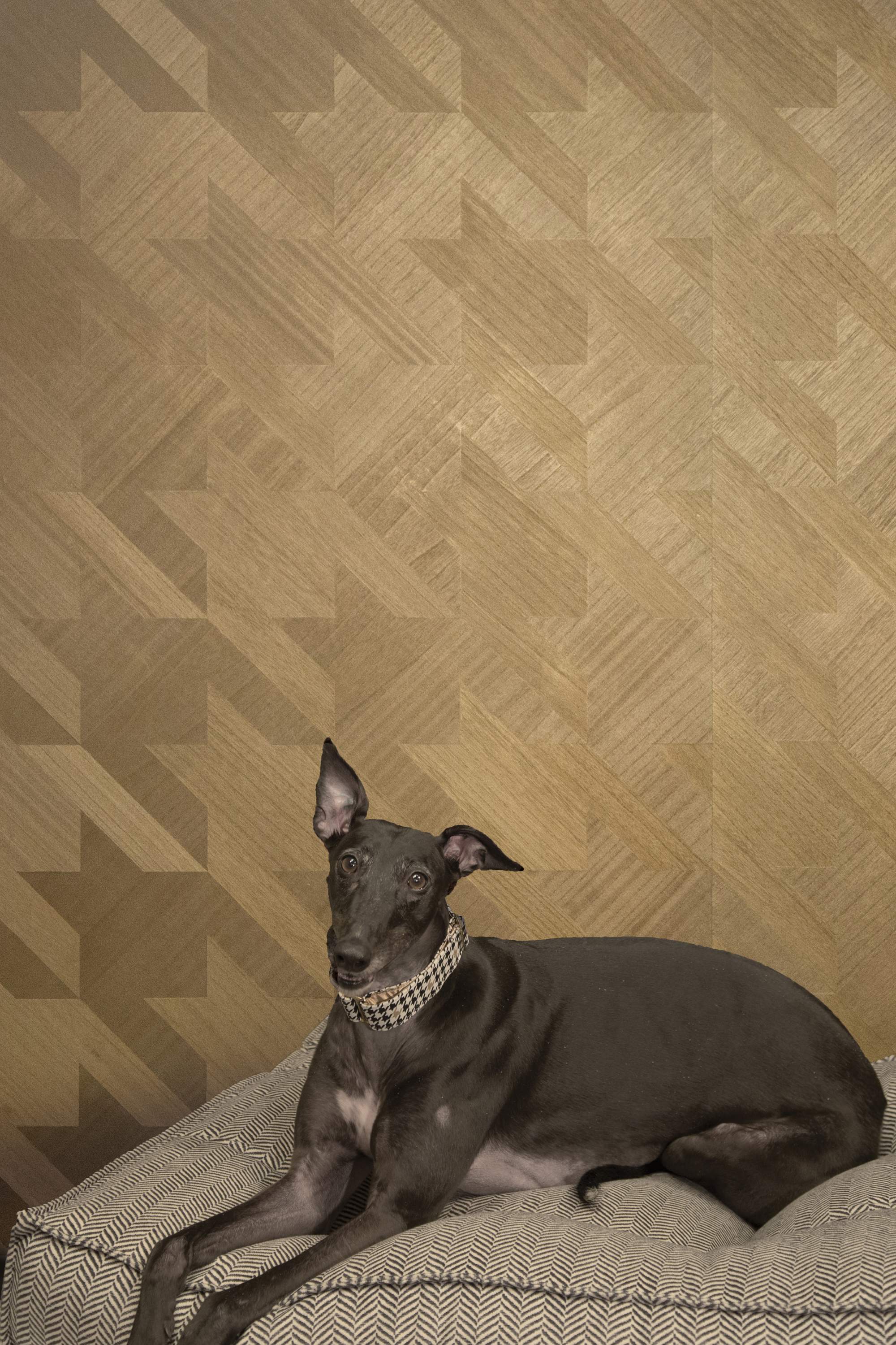 The traditional houndstooth pattern has been reimagined at a remarkable scale and texture. Ajiro Houndstooth, like all of our Ajiro collections, is die cut from ultra-thin paulownia wood, and applied onto a flexible paper backing. Cost-effective and sustainable, this is beautifully hand-finished in our Chicago studio.